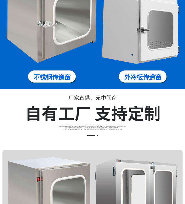 外冷板傳遞窗主要分為外冷板機械互鎖傳遞窗和外冷板電子互鎖傳遞窗,外冷板傳遞窗作為潔凈室的一種輔助設備,主要用于潔凈區與潔凈區、非潔凈區與潔凈區之間的小件物品的傳遞,以減少潔凈室的開門次數,**大限度的降低潔凈區的污染。